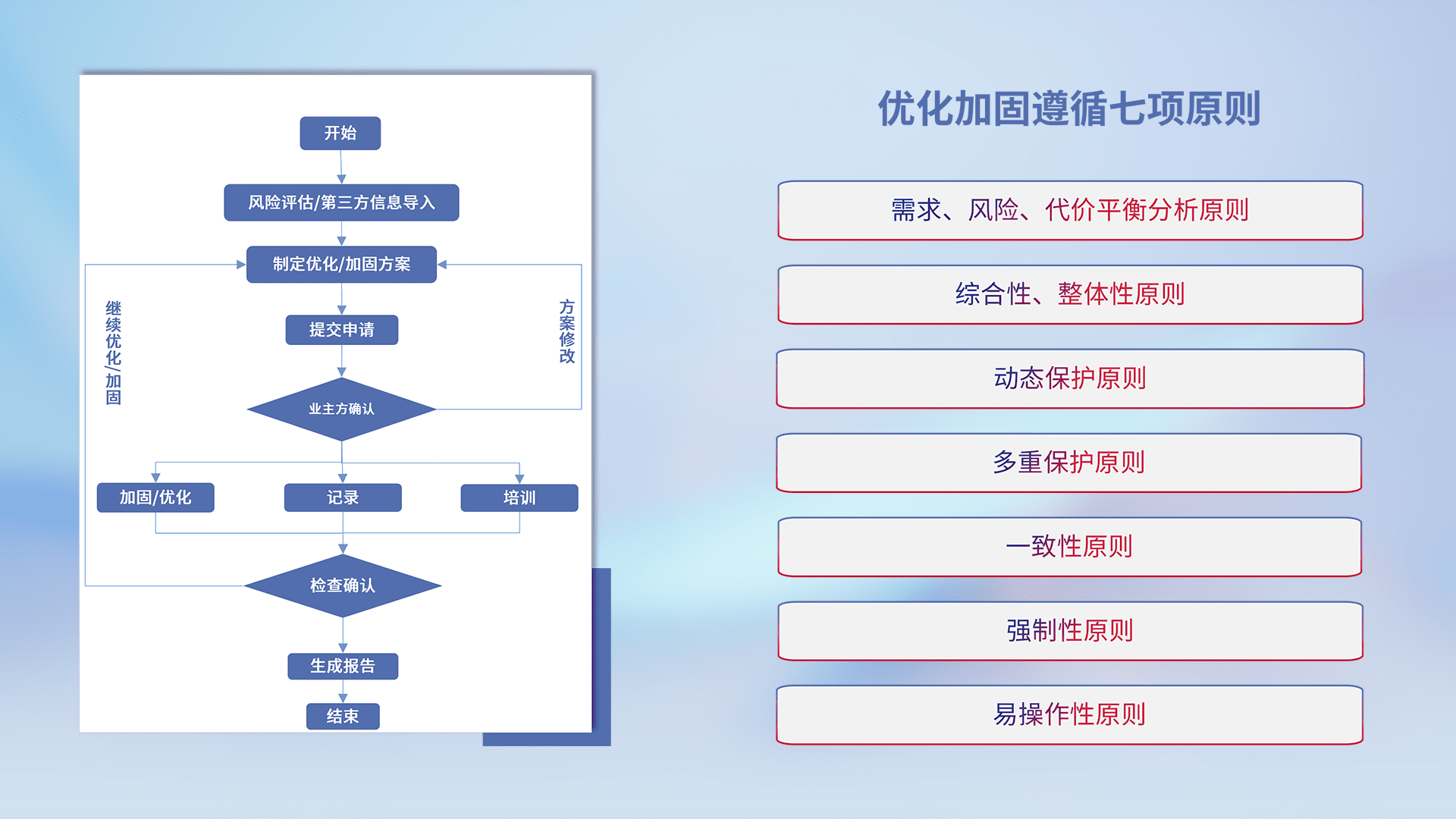 最大程度利用现有资产,,对评估发现的问题进行封堵与整改,,,,防止漏洞被利用,,,,提升整体网络安全性,,,为客户带来高标准的优化加固服务。。